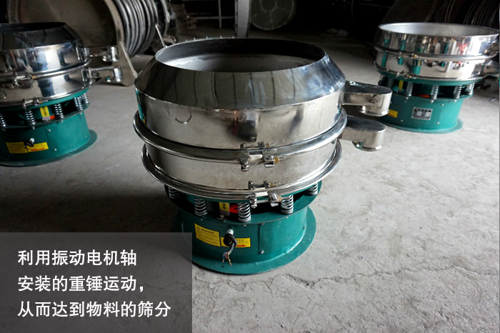 加緣震動篩其是對震動篩一種結構上的改造,其工作原理:是利用振動電機軸上下端所安裝的重錘運動,從而帶動篩網的運動而實現香料粉篩分的效果。其原理可以使物料在篩分中做360°的全身翻轉,從而能夠達到物料被充分的篩分。