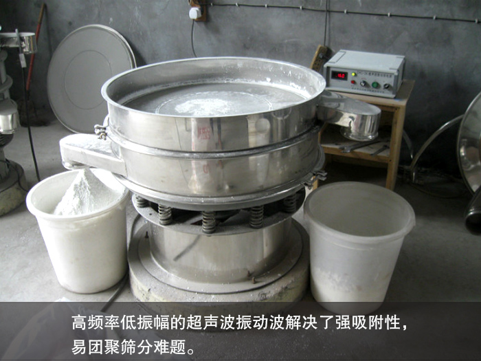 超聲波震動篩是旋振篩的一種衍生產(chǎn)品,是將超聲波控制器于旋振篩有機結(jié)合在一起,在篩網(wǎng)上面疊加一個高頻率低振幅的超聲波振動波,超微細粉體接受巨大的超聲波加速,使篩面上的物料始終保持懸浮狀態(tài),從而仰制黏附,摩擦,平降,楔入等堵網(wǎng)因素,從而解決了強吸附性,易團聚,高靜電,高精細,高密度,輕比重等篩分難題,使超微細粉篩分不再成為難事,特別適合高品質(zhì),精細粉體的用使用。